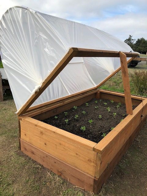 Thanks to the efforts of the North Beach Master Gardeners, the garden has two beautiful new hooped garden plots. MGs added resistant covers on top of the two of their four Demonstration Beds that have been part of the Garden by the Sea for the last 3 years. The covers are made with a double layer of UV protected 6ml plastic over PVC supports on a frame of treated lumber. These structures will create a greenhouse effect to keep the plants warm allowing them to garden well into the winter months.